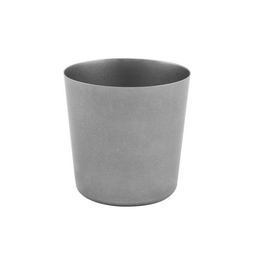 Bägare i rostfritt stål med en anitk finish. Längd 8.5 cm, bredd 8.5 cm. Volym 40 cl.