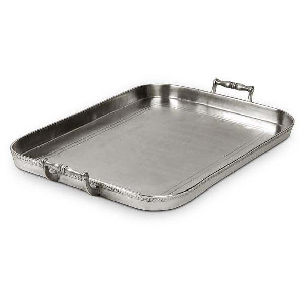 S5456Rektangulär bricka med handtag 44,5x30cm. Tillverkad för hand i tenn av Italienska tenntillverkare sedan 1954.