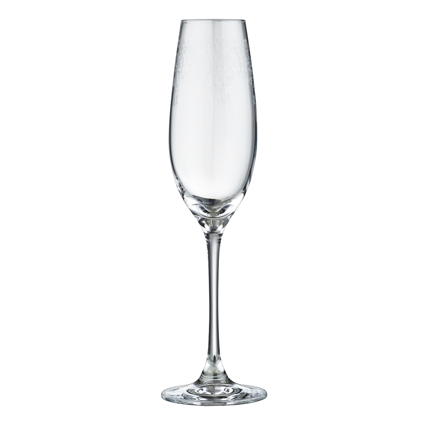 Detta eleganta champagneglas i kristallglas tillhör serien Chateau från Leonardo. Glaset är graverat med ett vackert blommönster och blir ett fint inslag i din dukning.