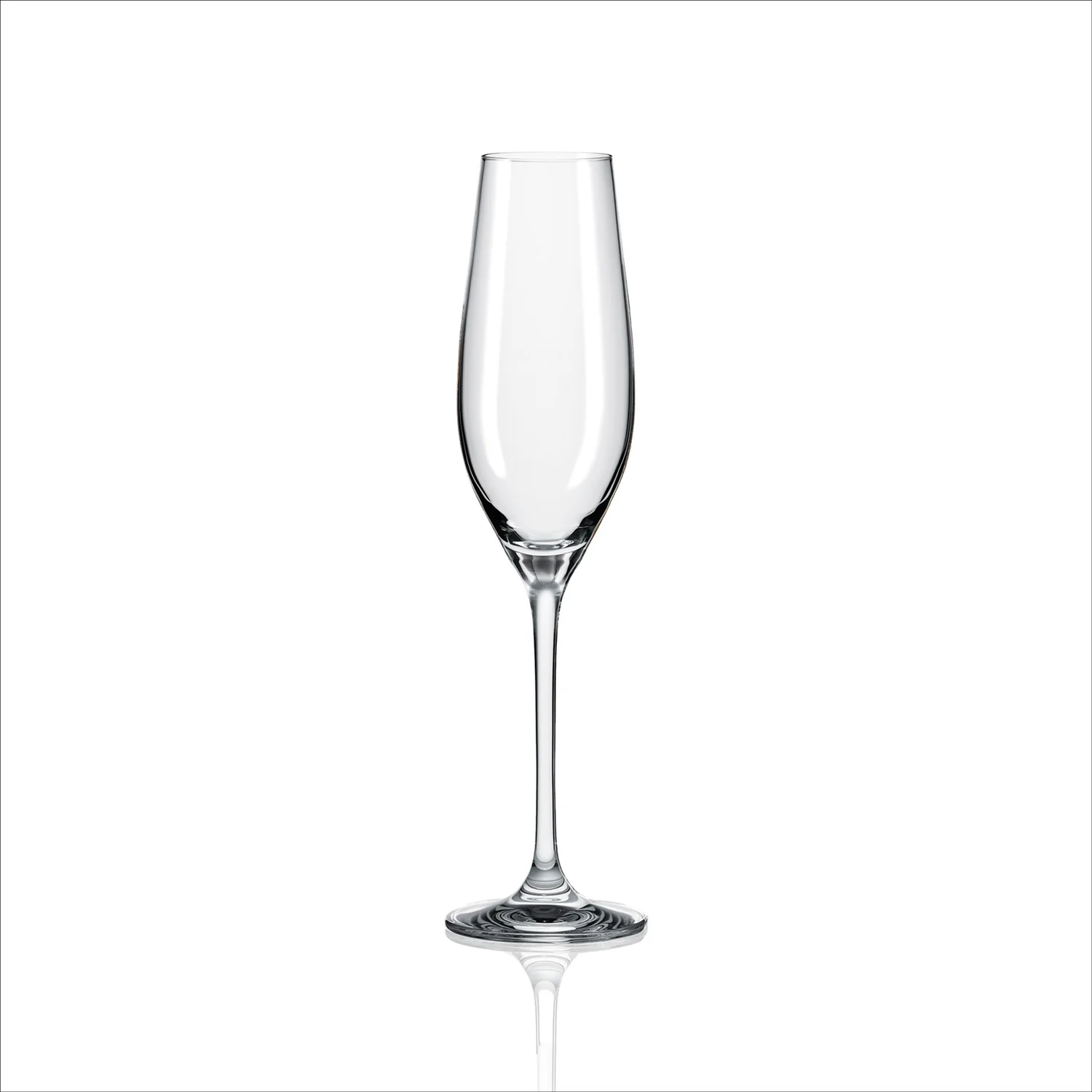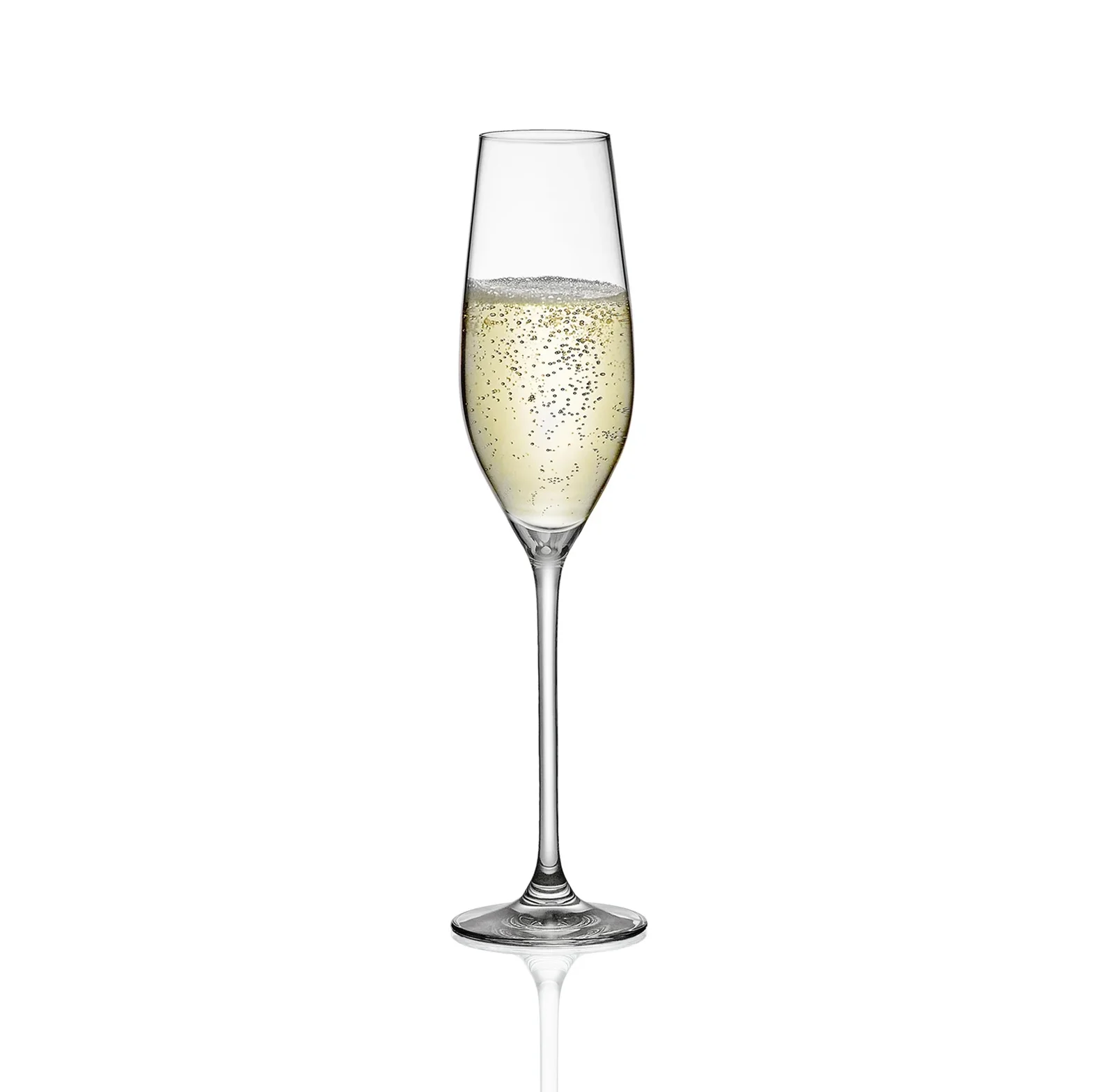 Rona Prestige Champagneglas. Tillverkad av blyfri kristall ger denna champagneflöjt en fantastisk glans och klarhet. Dess förlängda, ultratunna stjälk lägger till en elegant touch till din champagneupplevelse.