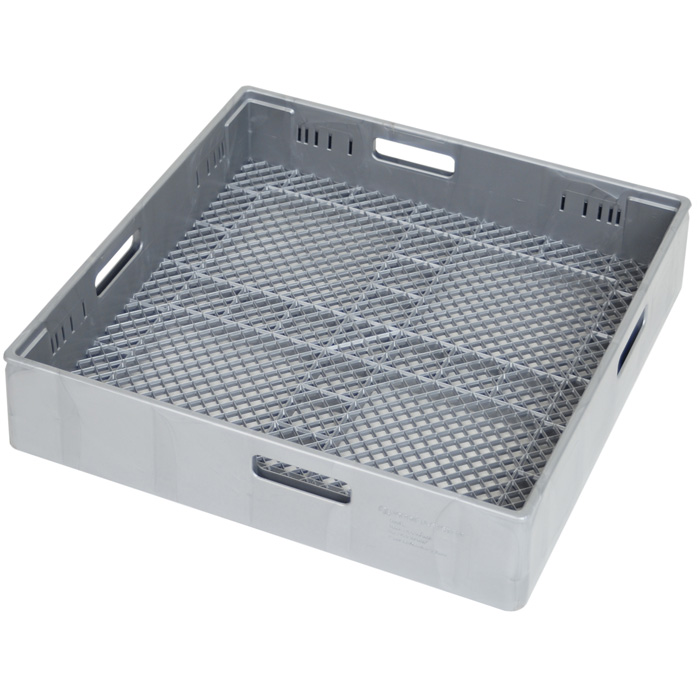 Bestickkorg för diskning av bestick och redskap, 50×50 cm. Kapacitet ca 250 bestick per korg. Bottenkonstruktionen hindrar besticken från att falla igenom. Formsprutad PP-Plast, staplingsbar, helt släta sidor, ergonomiskt placerade handtag diagonalt för bättre greppvänlighet och balans, för optimalt genomsläpp av disk/skölj vatten har korgen en unik konstruktion med rombisk stormaskig botten, låg vikt, dubbla…