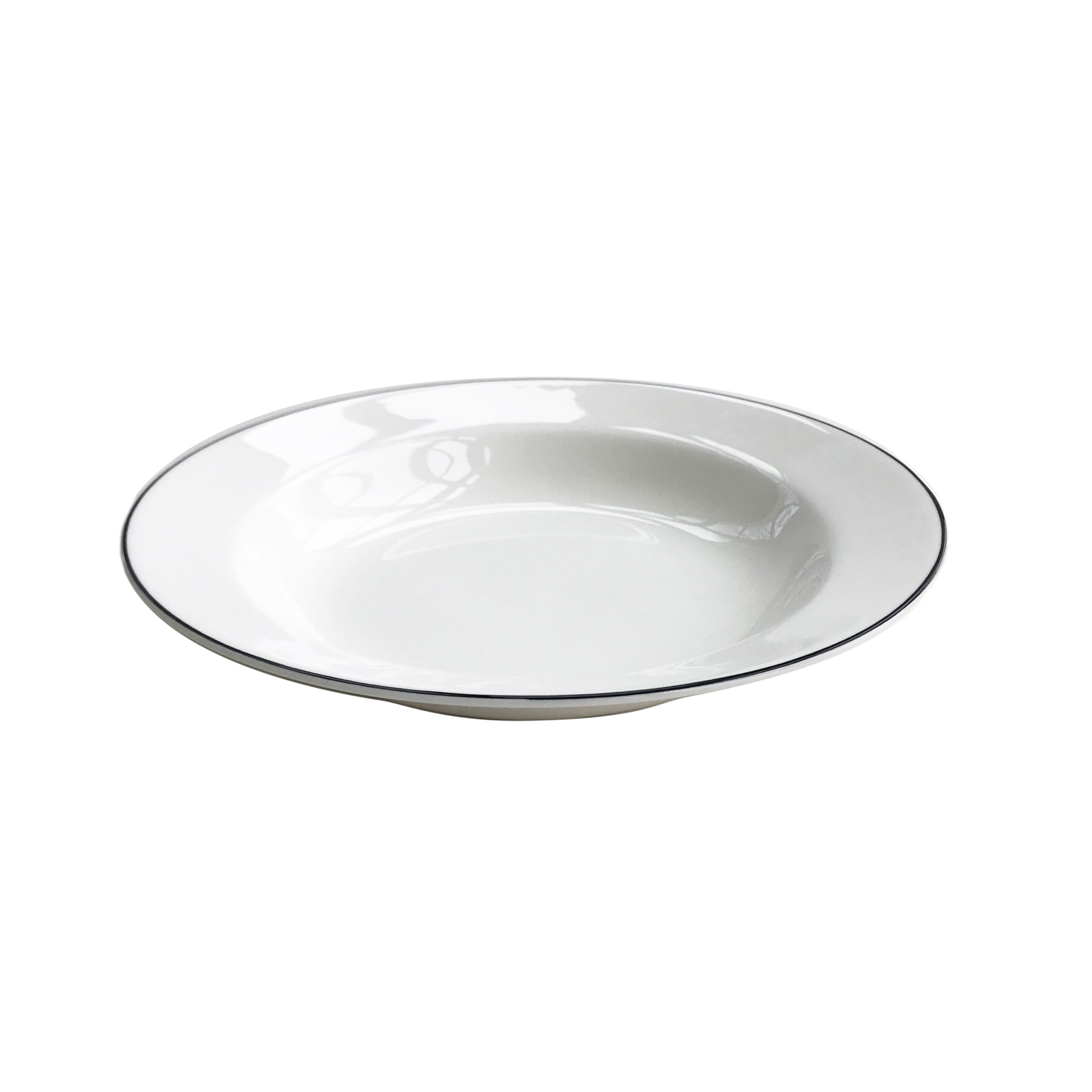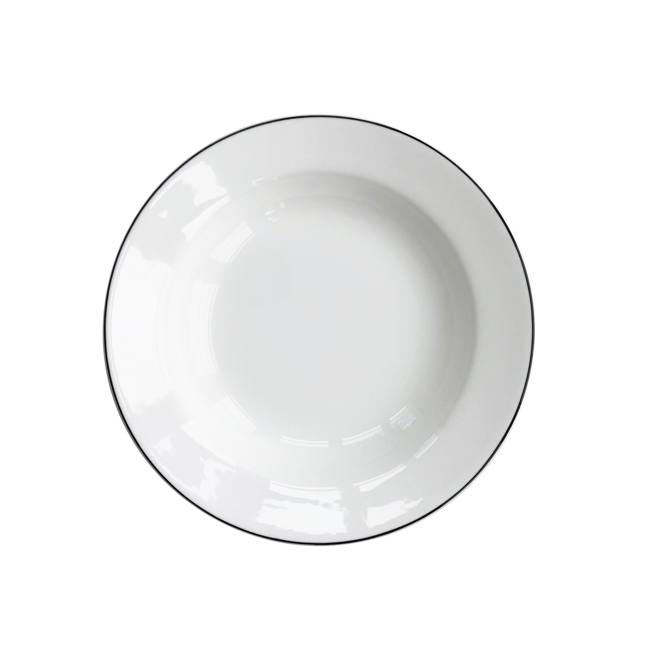 P6543Djup tallrik i benporslin med transparent, ofärgad glasyr och dekoren Snövit ur serien Natur. Tallriken tål maskindisk och mikrovågsugn. Den svarta kantlinjen är handmålad under glasyren. Dekordesign: Siv Juhlin & Stina Juhlin