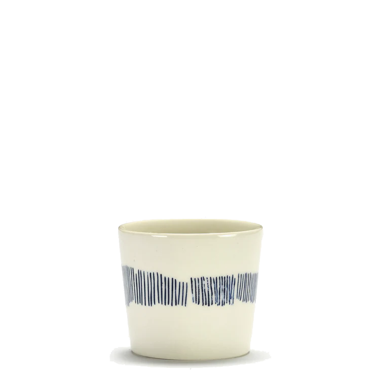 Espressokopp 15cl White Stripes Blue i kollektionen Feast, tillverkad i stengods. Kocken Yotam Ottolenghi skapade denna serie tillsammans med den italienska konstnären Ivo Bisignano.
