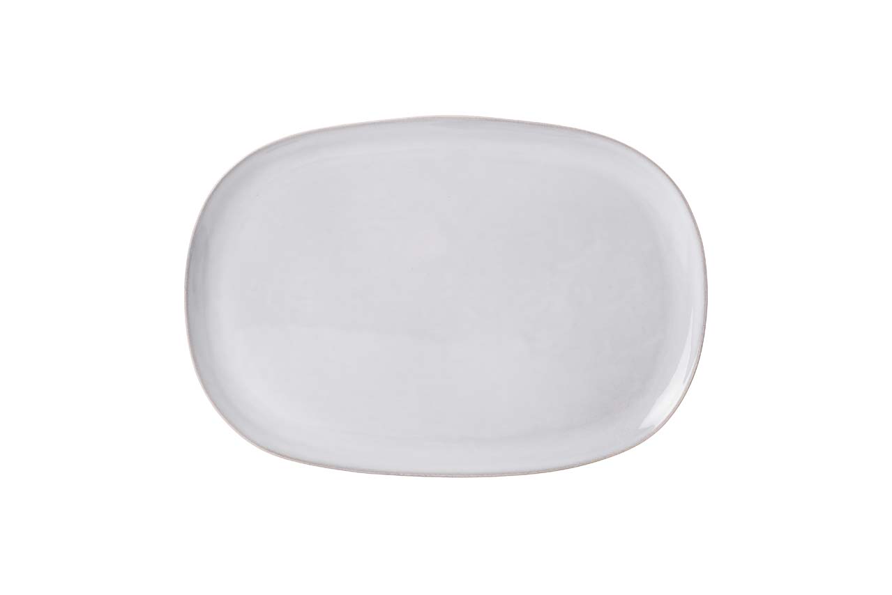 Handgjord, avlång tallrik i stengods från Heirol och Nosse Ceramics. Ljus stenfärg med stilren design – passar som middagstallrik eller serveringsfat. Varje del är unik och hållbart tillverkad i Portugal.