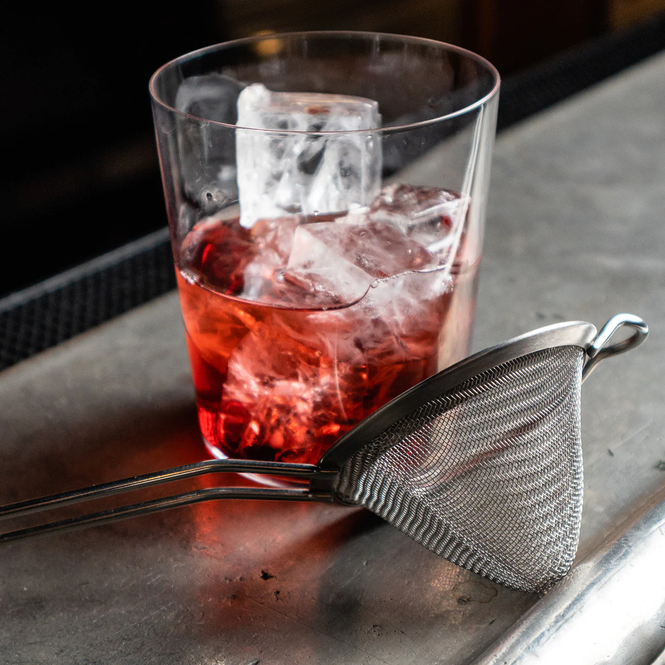 En finsil, eller dubbelsil som den också kallas, används för att sila vätska, små isbitar och separera skum. Ett måste för alla barer.