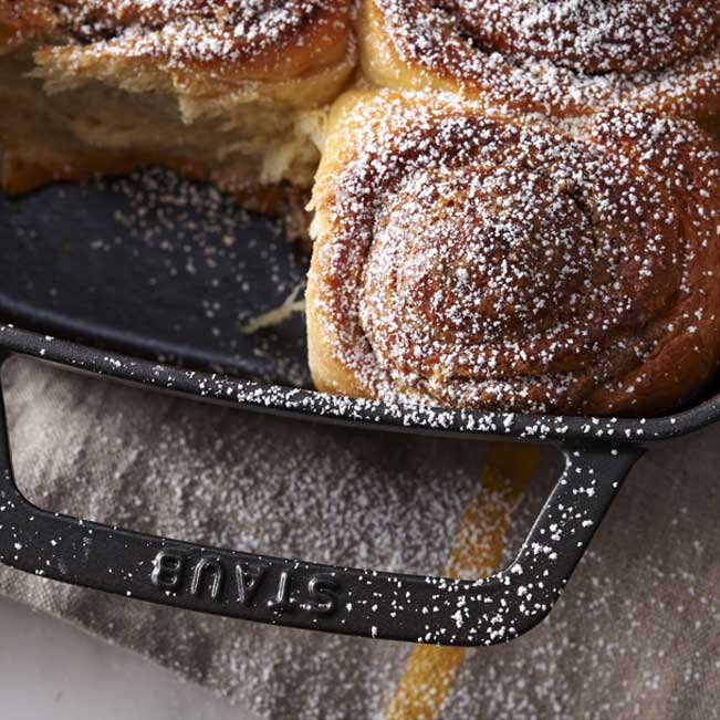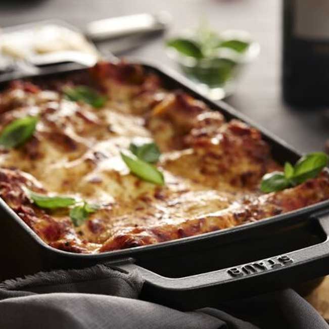 Rektangulär gratängform från Staub kan du laga smakfulla maträtter både på spisen och i ugnen. Den passar utmärkt för att till exempel tillaga lasagne, moussaka och schnitzelpannor. Den tunga gjutjärnsformen har två bekväma handtag så att den går bra att greppa. Gratängformen passar till alla typer av spisar, även induktionsspisar. Du kan exempelvis steka maträtterna direkt i formen och därefter gratinera dem i ugnen för att få en vacker guldbrun yta.