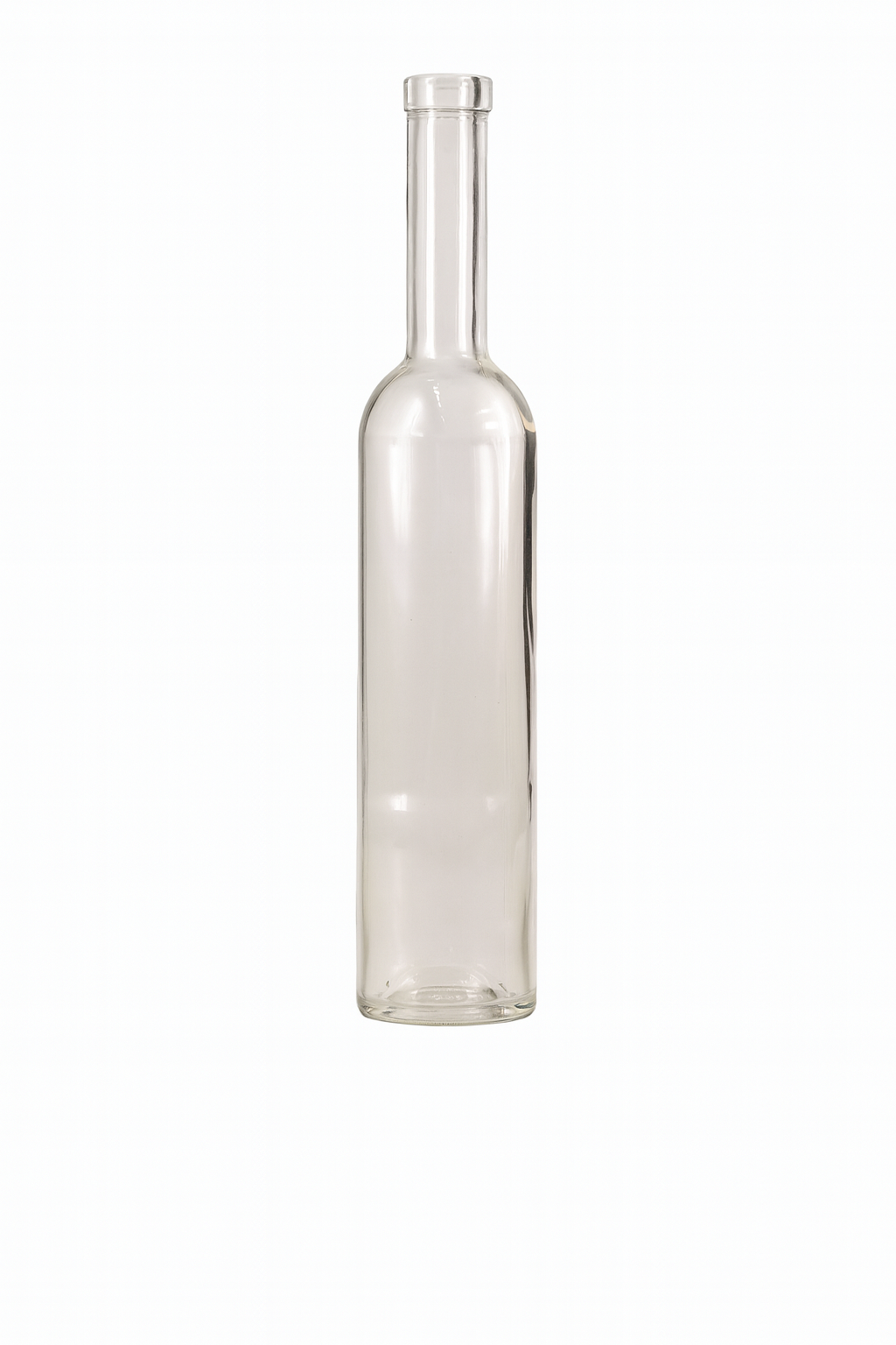 Glasflaska med volym 37,5 cl och höjd 28 cm.