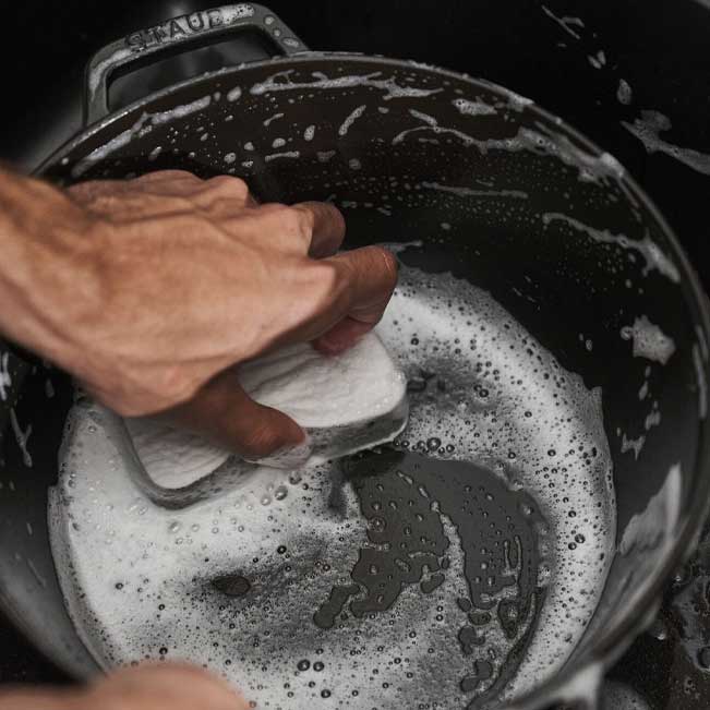 Emaljen är mycket tålig och motståndskraftig mot repor. Grytorna har 3 lager kvalitativ blank emalj på utsidan och matt svart riktig stek emalj på insidan. Grytan har även ett praktiskt självösande lock med piggar på undersidan som gör att den kondenserade ångan dropparna jämnt fördelat över maten istället för att rinna ut med sidan av grytan. Det platta lockets form och vikt tillsluter ångan perfekt och bevarar matens smaker och vitaminer. Rostar inte, tar inte smak av olika råvaror och är mycket lätt skött. Vi rekommenderar att grytorna diskas för hand vilket ger längre livslängd på produkten.