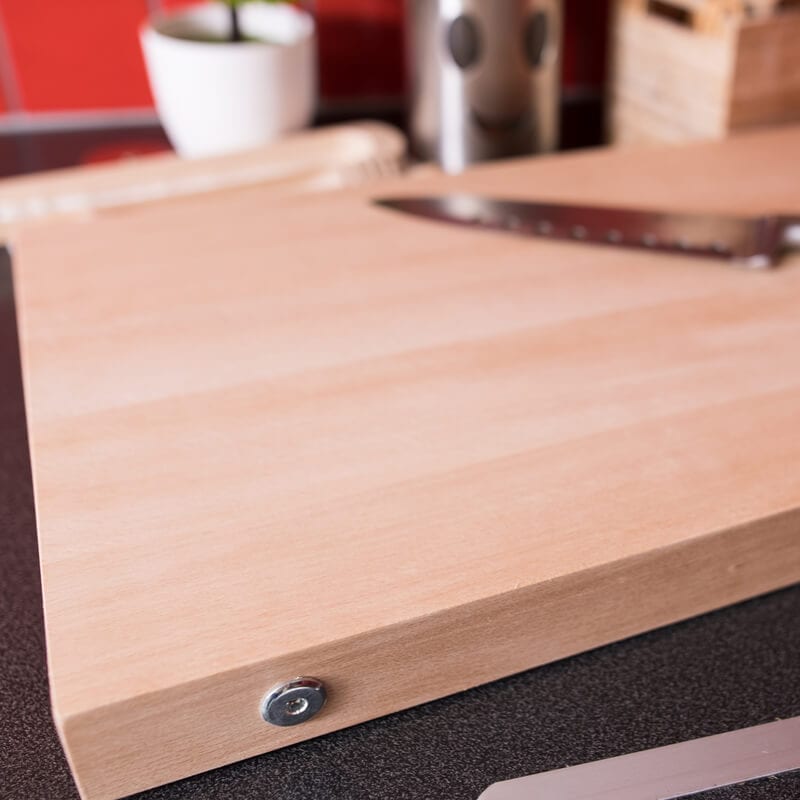 K5046Tjock och rejäl huggbräda i bok. Bultarna som går genom brädan kan vid behov dras åt för att undvika sprickbildning. Förutom matberedning passar en skärbräda i trä bra att servera mat på. Skapa en rustik och hemtrevligdukning genom att servera mat direkt från grillen på en träskärbräda. Alla träprodukter diskas för hand.