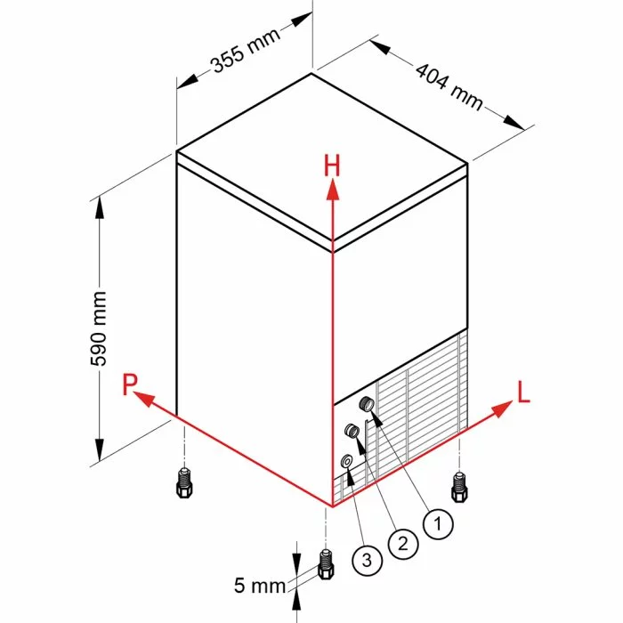 Iskubmaskin från NTF som har en driftsäker konstruktion och hög kvalitét. Kapaciteten på denna maskin är 20kg is/dygn och den håller 4kg is i lager. Iskubarna som produceras blir i klar och fin kvalitet, de väger 14gram och har ett mått på 3,0×2,9cm. Ismaskinen är vattenkyld och kan byggas in under köksbänk så länge det finns tillgång till ventilation, avlopp och vatten.
