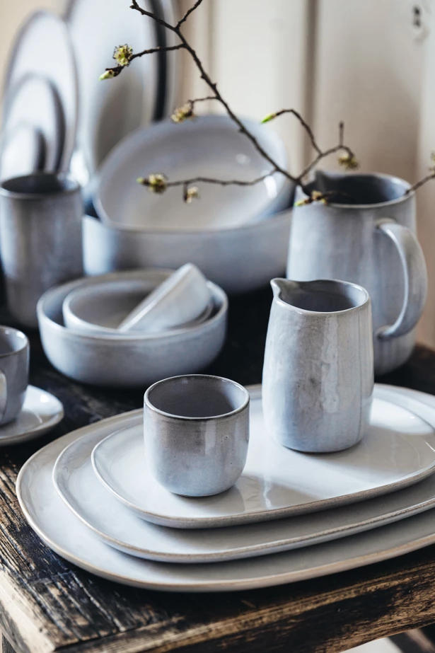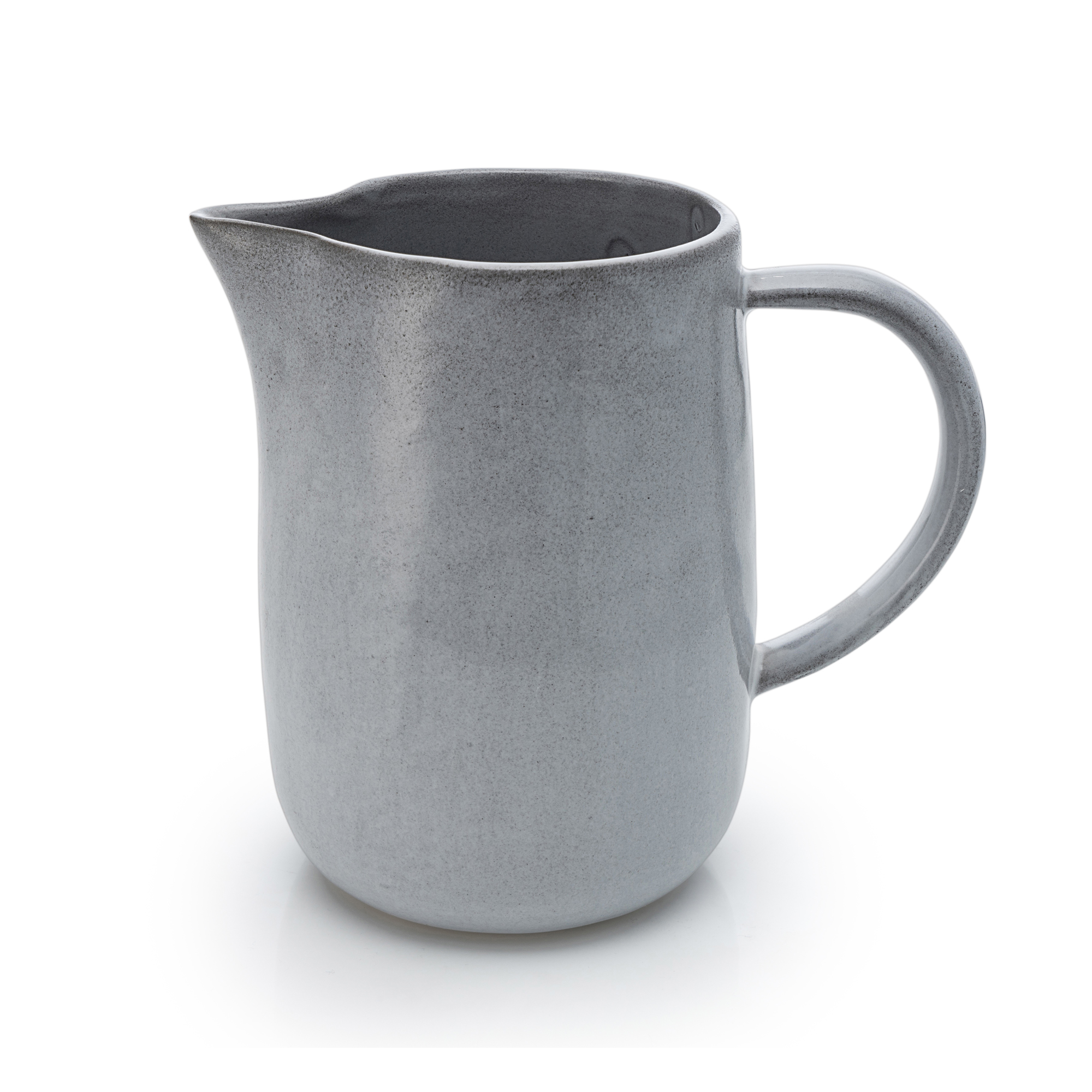 P9265Handgjord kanna i stengods från Heirol och Nosse Ceramics. Ljus stenfärg med stilren design och praktiskt handtag, perfekt för servering av vatten, juice eller saft. Hållbart tillverkad i Portugal – varje kanna är unik.