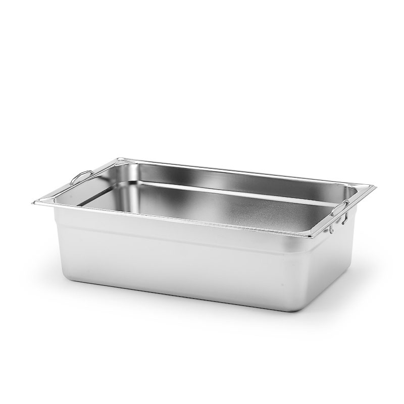 Kantin tillverkad av rostfritt stål 18/10 från Kawasaki steel / japan. Förstärkta hörn för att minska ”hundöron” och kantskador. Handtagen är fällbara och kantinen är staplingsbar utan att kila fast. Tillverkad enligt EN631-1 Gastronorm standard. GN inom matlagning och kökutrustning står för Gastronorm. Gastronorm är en standard som används över hela världen för att standardisera mått och storlekar på bland annat formar, lådor och fat som används i restaurangkök och storkök. GN-standarderna gör hanteringen och förvaringen av mat enkel samt underlättar planeringen av matlagning och servering.