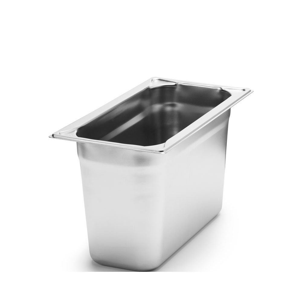 GN 1/3: Tredjedelsstorlek, vanligtvis 325×176 mm.
