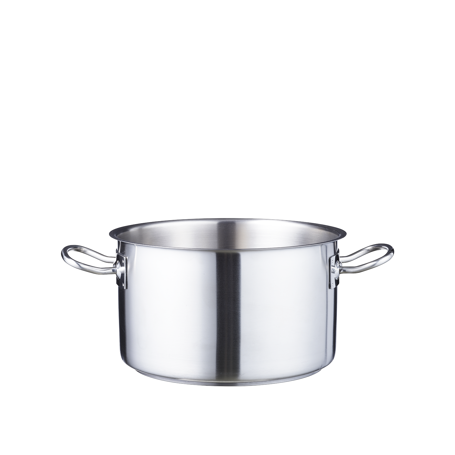 Kittel rostfritt stål hög 6L. Professionell kittel i rostfritt stål med rejäla och ergonomiskt utformade handtag. Kitteln har en tjock bottenplatta i tre skikt med en kärna i aluminium och ytbeläggning i rostfritt stål. Detta ger en bra och jämn värmespridning och minskar risken för vidbränning. Passar alla typer av värmehällar. Lock säljs separat.