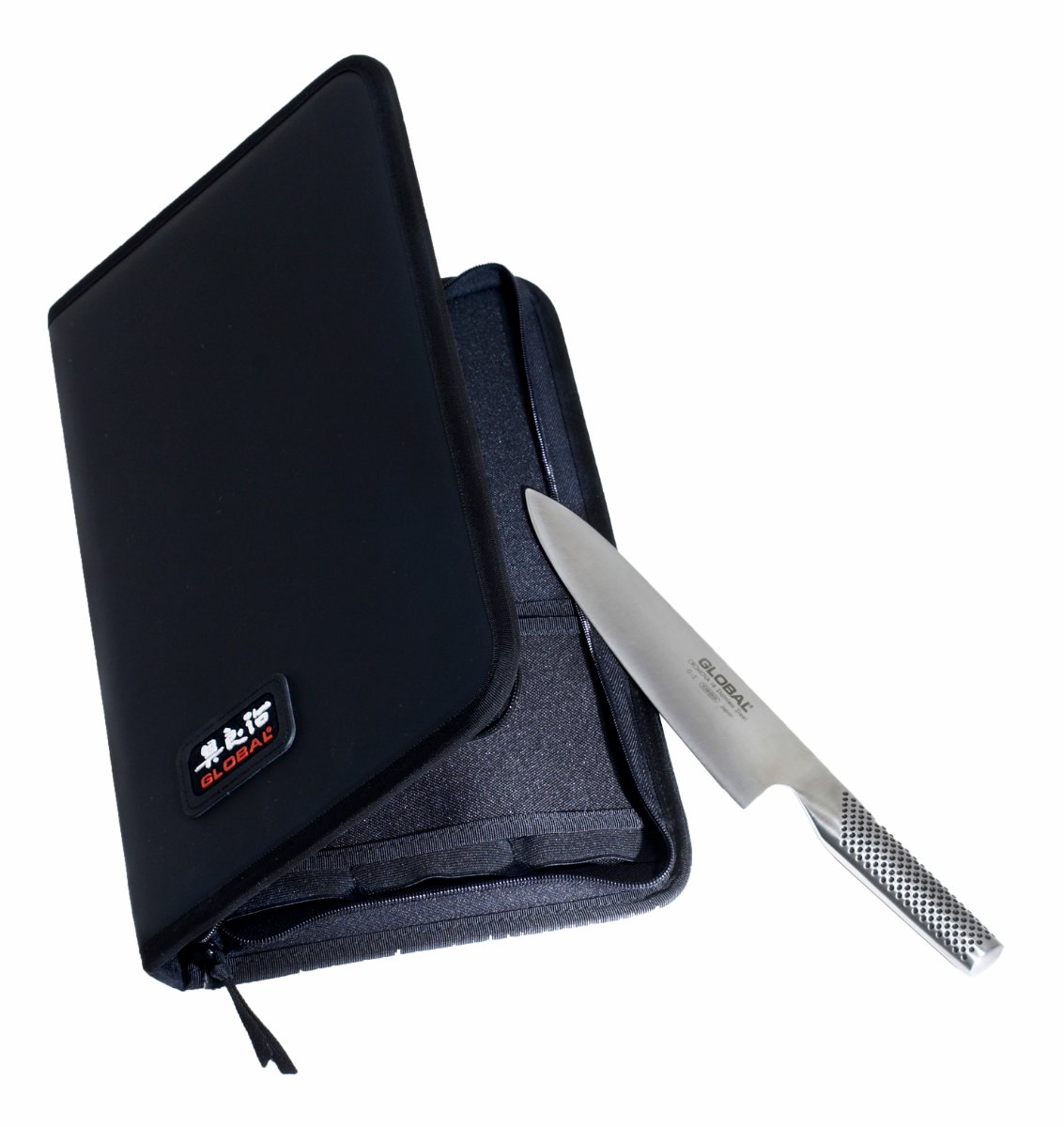 Globals knivväskor i nylon är både säkra för knivarna och smidiga att bära med sig. Den här modellen rymmer sju knivar med en bladängd på max 22 cm. Mått: 23,5 cmx37,5 cmx3 cm.