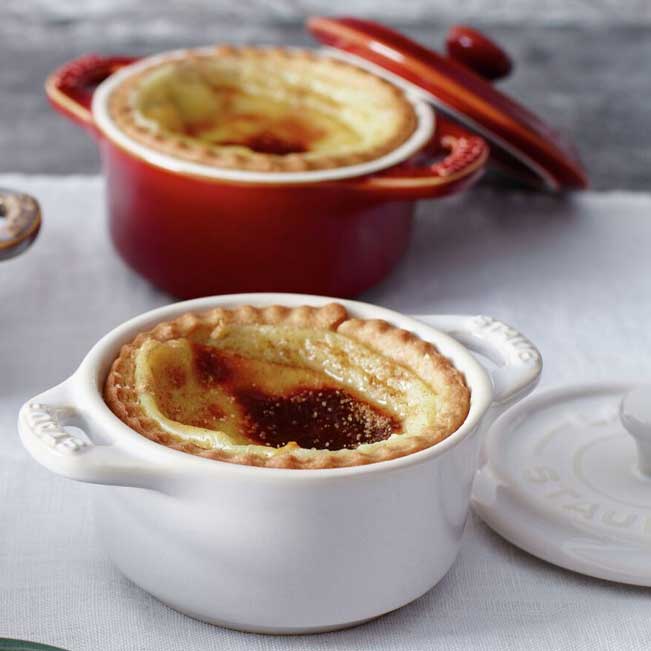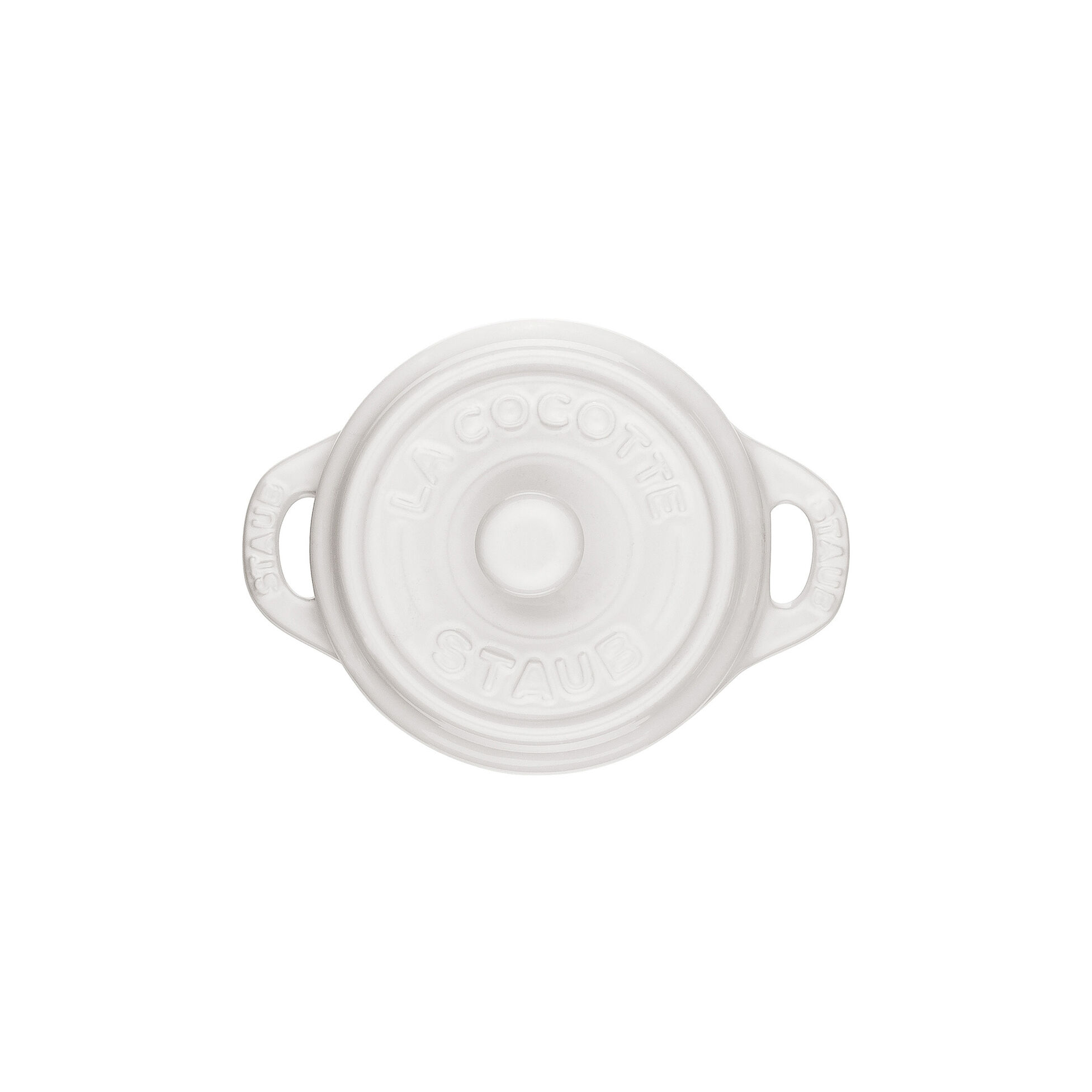 Rund vit minigryta från Staubs keramiska serie Ceramique kan användas i ugnen och även i mikrovågsugnen. Den passar till exempel för raguer och desserter. Det är inte bara fantastisk när gäller att tillaga rätterna utan också för att servera dem. Tack vare den tilltalande vita färgen ser grytan också bra ut på bordet som porslin för en portion. Med minigrytan med en diameter på 10 cm kan du tillaga smarriga desserter eller delikata små rätter.