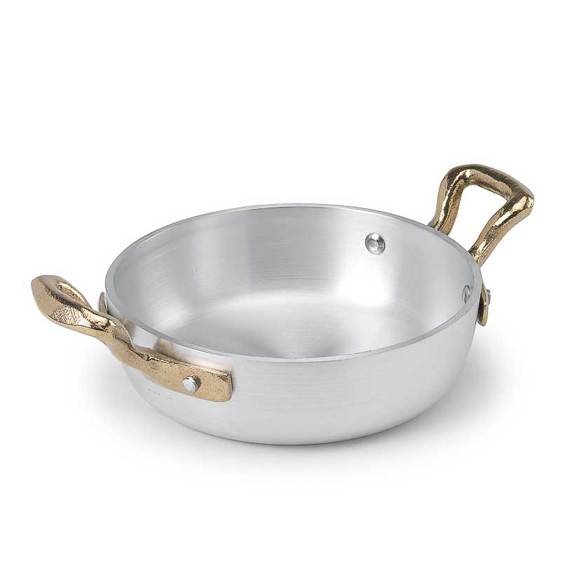 Eternapanna i aluminium med 2 st handtag i mässing från Agnelli. Pannan passar bra att servera för- och efterrätter i.