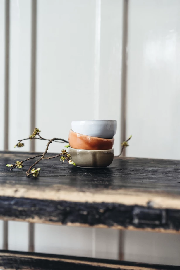 Handgjord skål i stengods från Heirol och Nosse Ceramics. Ljus stenfärg med stilren form – perfekt för sallad, pasta eller frukost. Varje skål är unik och hållbart tillverkad i Portugal.