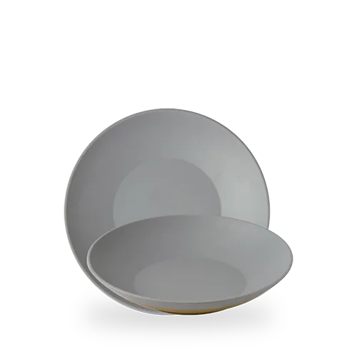 S9368Stor låg skål i grå melamin med 36 cm diameter. Slitstark och lätt, idealisk för servering av sallader, frukt eller större rätter.