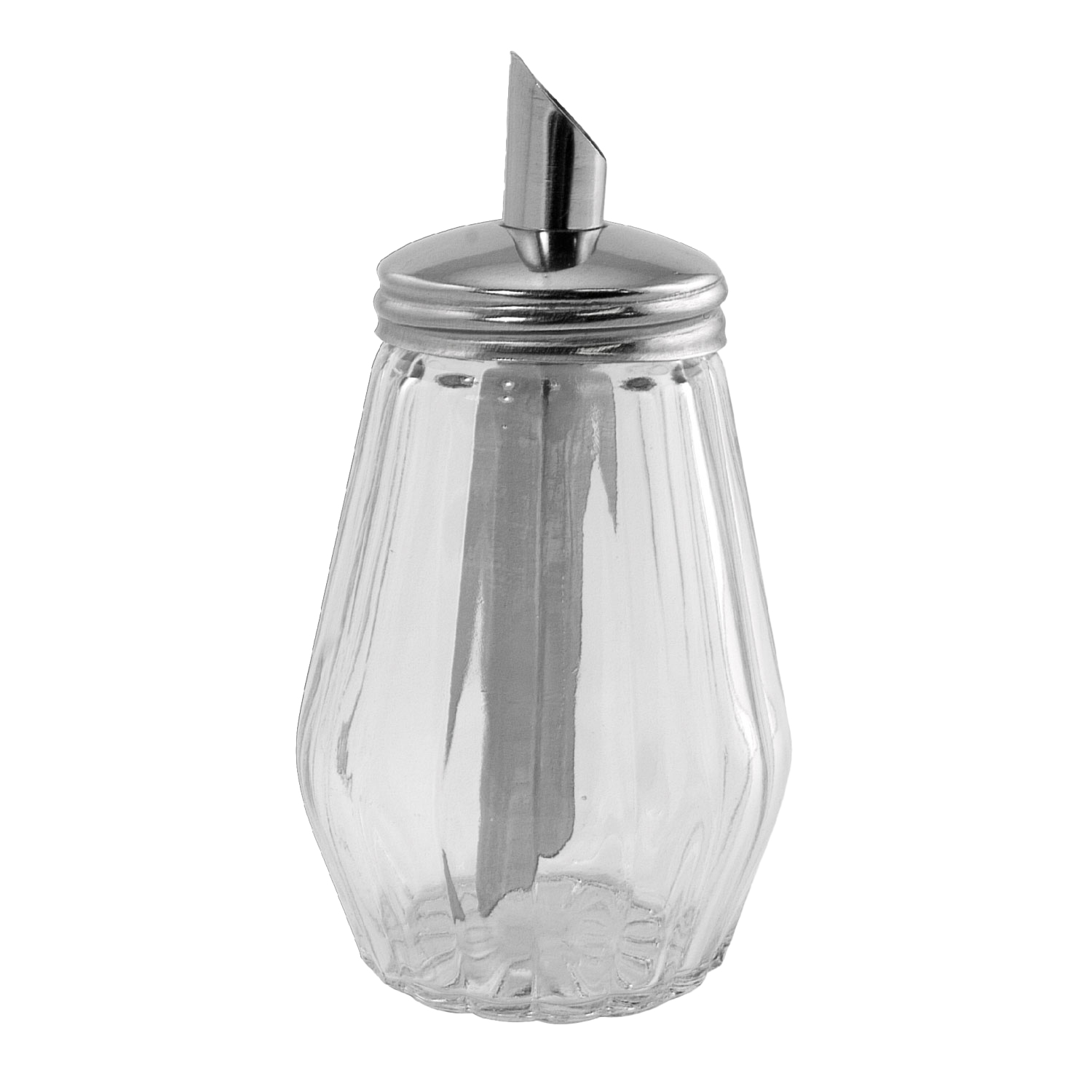 Sockerportionerare med behållare i glas och lock i rostfritt stål.