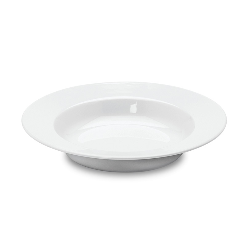 P2341Vit djup tallrik tillverkad av porslin i serien Grad från Figgjo. Formgiven av Olav Joa.