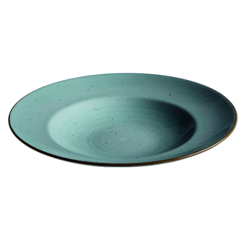 P8206Handmålad pasta/salladstallrik i turkost med bruna prickar. Stapelbar, tål mikrovågsugn, diskmaskin och frys.