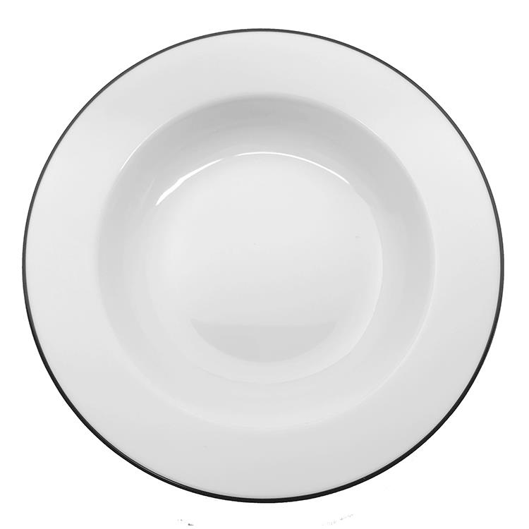 P2277232Handmålad pasta/salladstallrik med svart rand. Stapelbar, tål mikrovågsugn, diskmaskin och frys.