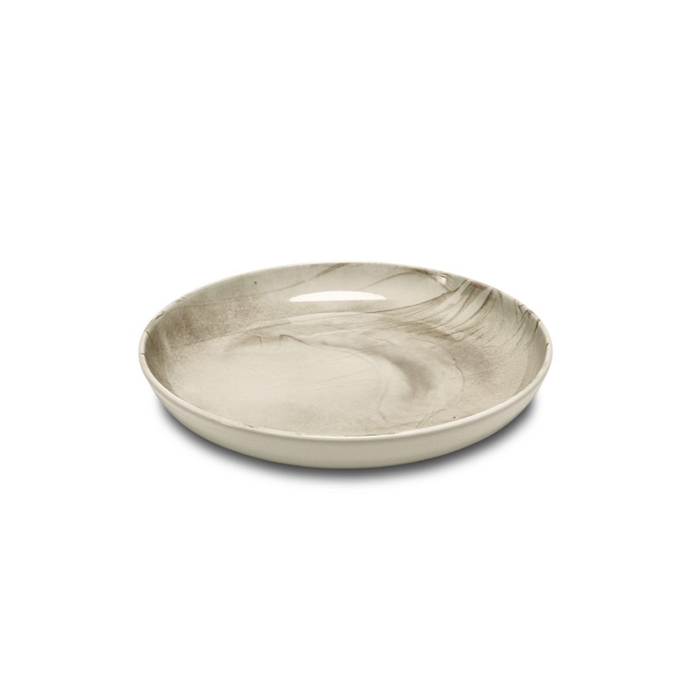 Brun tallrik med hög kant tillverkad av porslin i serien Flom från Figgjo.