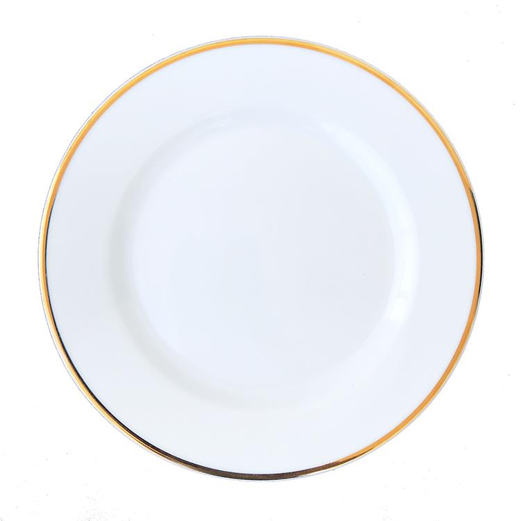 P2306751NFörrätts/desserttallrik med guldrand som ger ett elegant intryck. Stapelbar, tål mikrovågsugn, diskmaskin och frys.