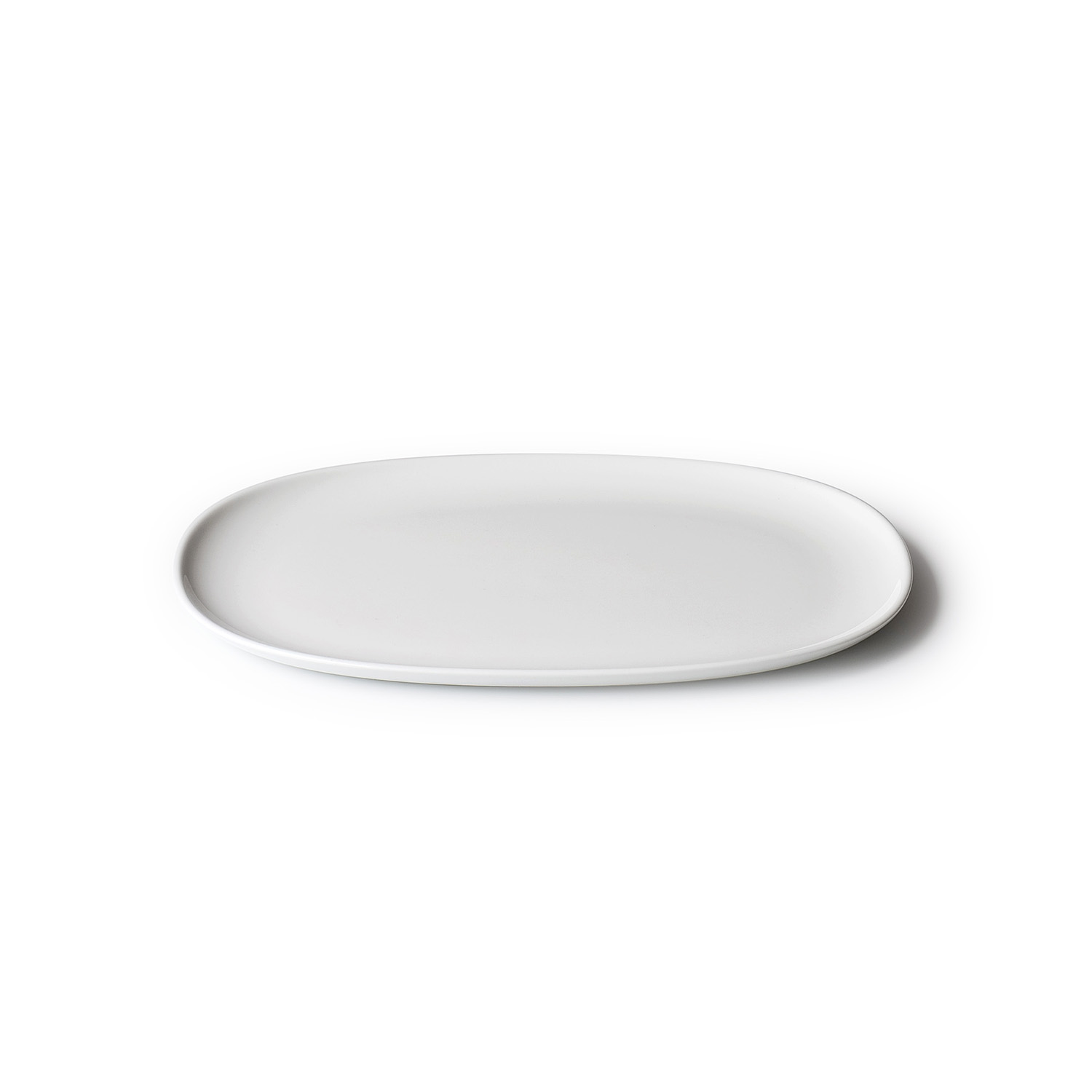Vit oval tallrik tillverkad av porslin i serien Frame från Figgjo. Formgiven av Skogstad & Wærnes.