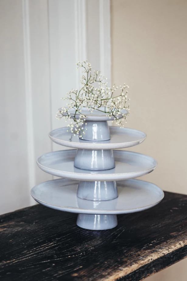P9264Handgjort tårtfat i stengods från Heirol och Nosse Ceramics. Ljus stenfärg med enkel men elegant design som lyfter både vardag och fest. Varje fat är unikt och hållbart tillverkat i Portugal.