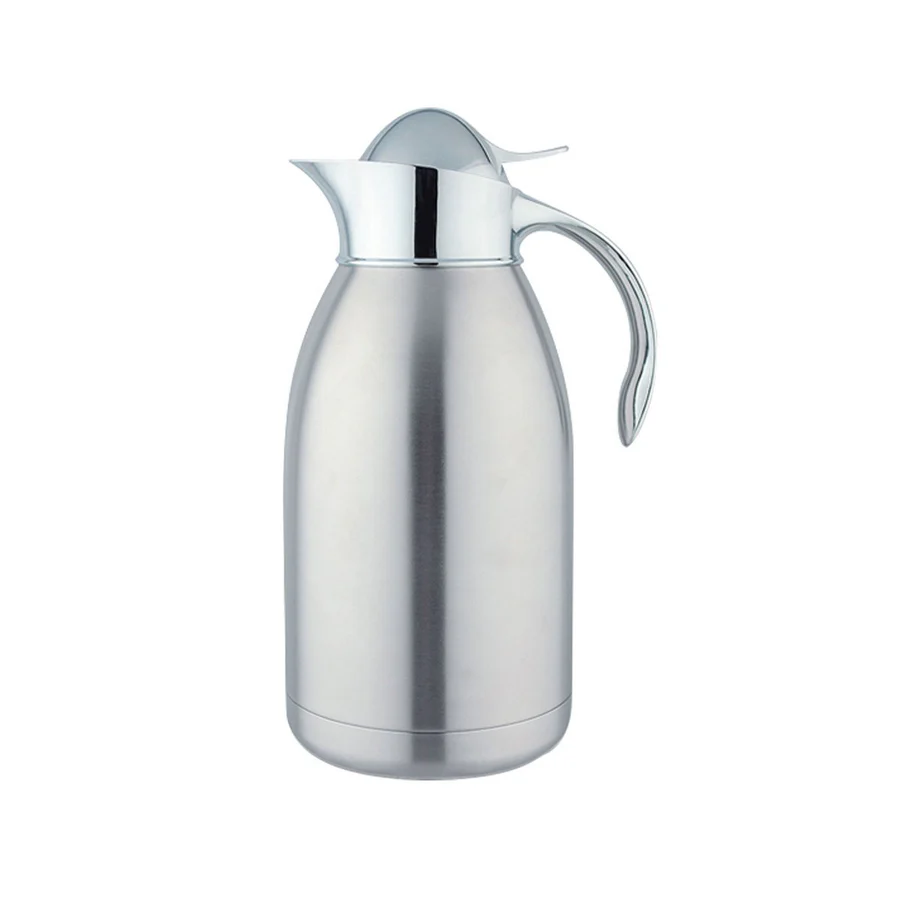 S2041Isolerad termoskanna i rostfritt stål som håller drycker varma eller kalla i upp till 8 timmar. Enkel att använda med tryckknapp och skruvlock – perfekt för servering hemma eller på kontoret.