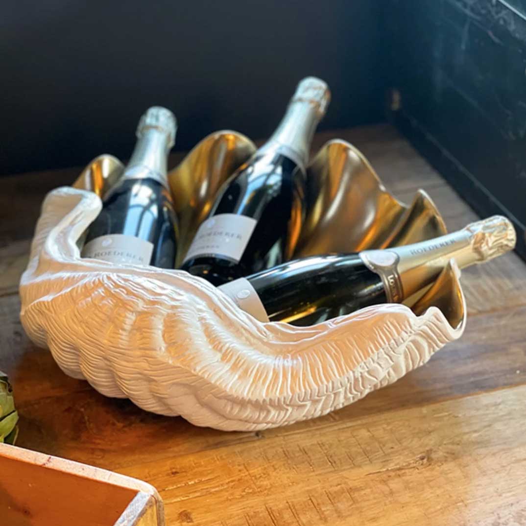 Champagne- & vinkylare i form av en snäcka, snäckan rymmer 3st flaskor.